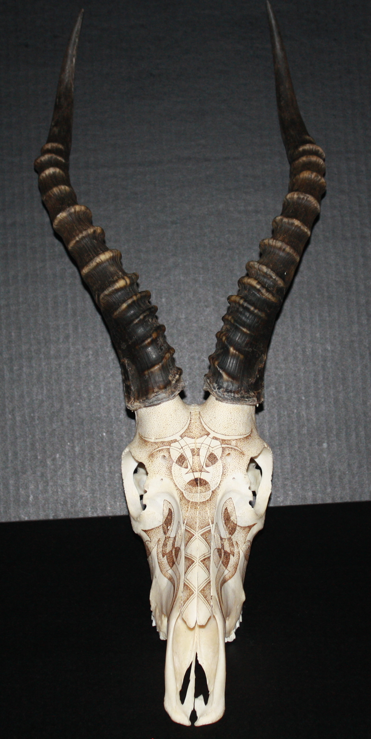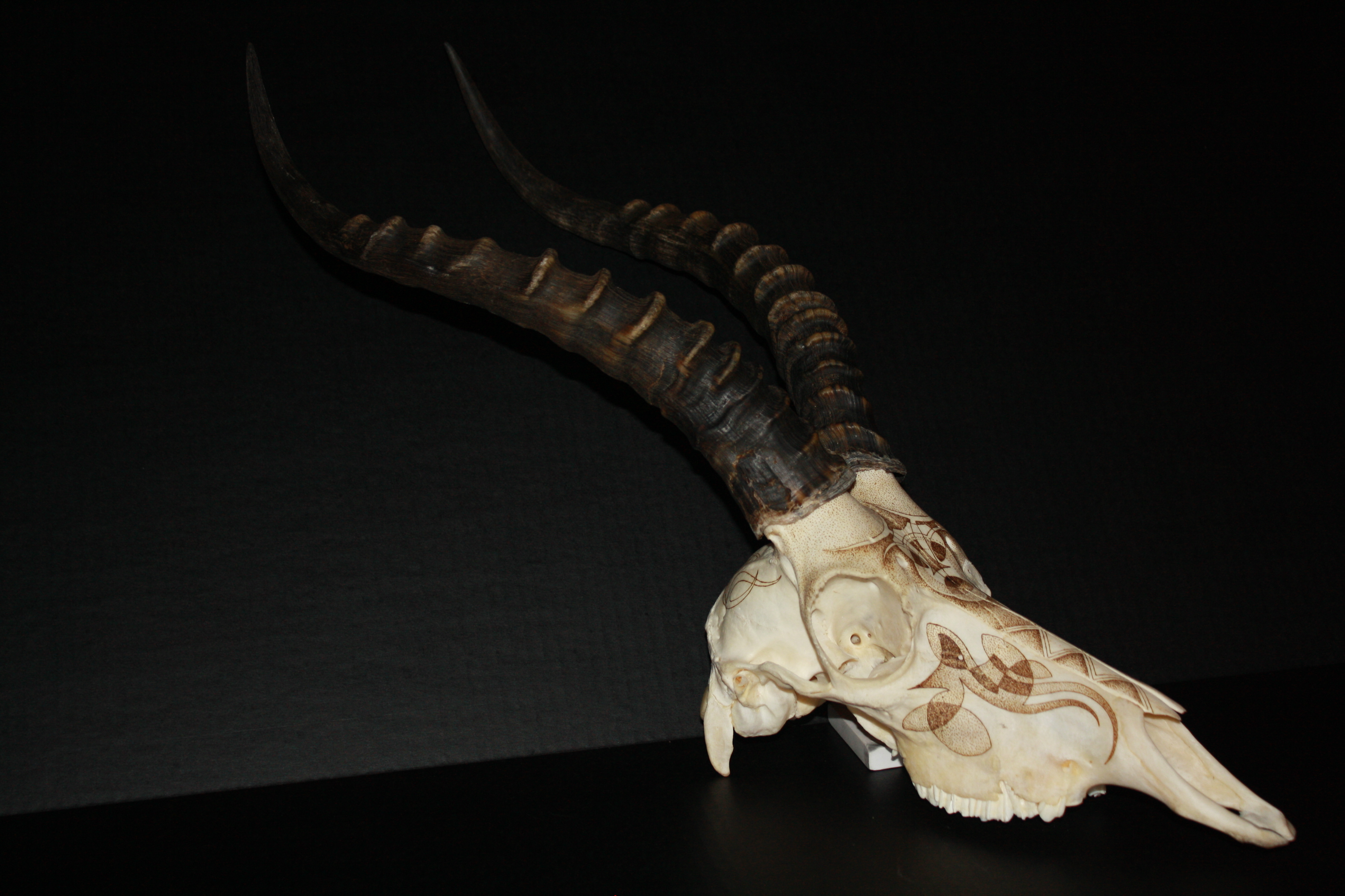Horned Animals South African Blesbok skull #10 Date: February 24, 2014Author: nrodzoriginals 0 Comments South African Blesbok Approx. 11-1/2 inch long skull with 16 inch horns #10 Sold Share this: Click to share on X (Opens in new window) X Click to share on Facebook (Opens in new window) Facebook Click to share on Pinterest (Opens in new window) Pinterest Like Loading... Related