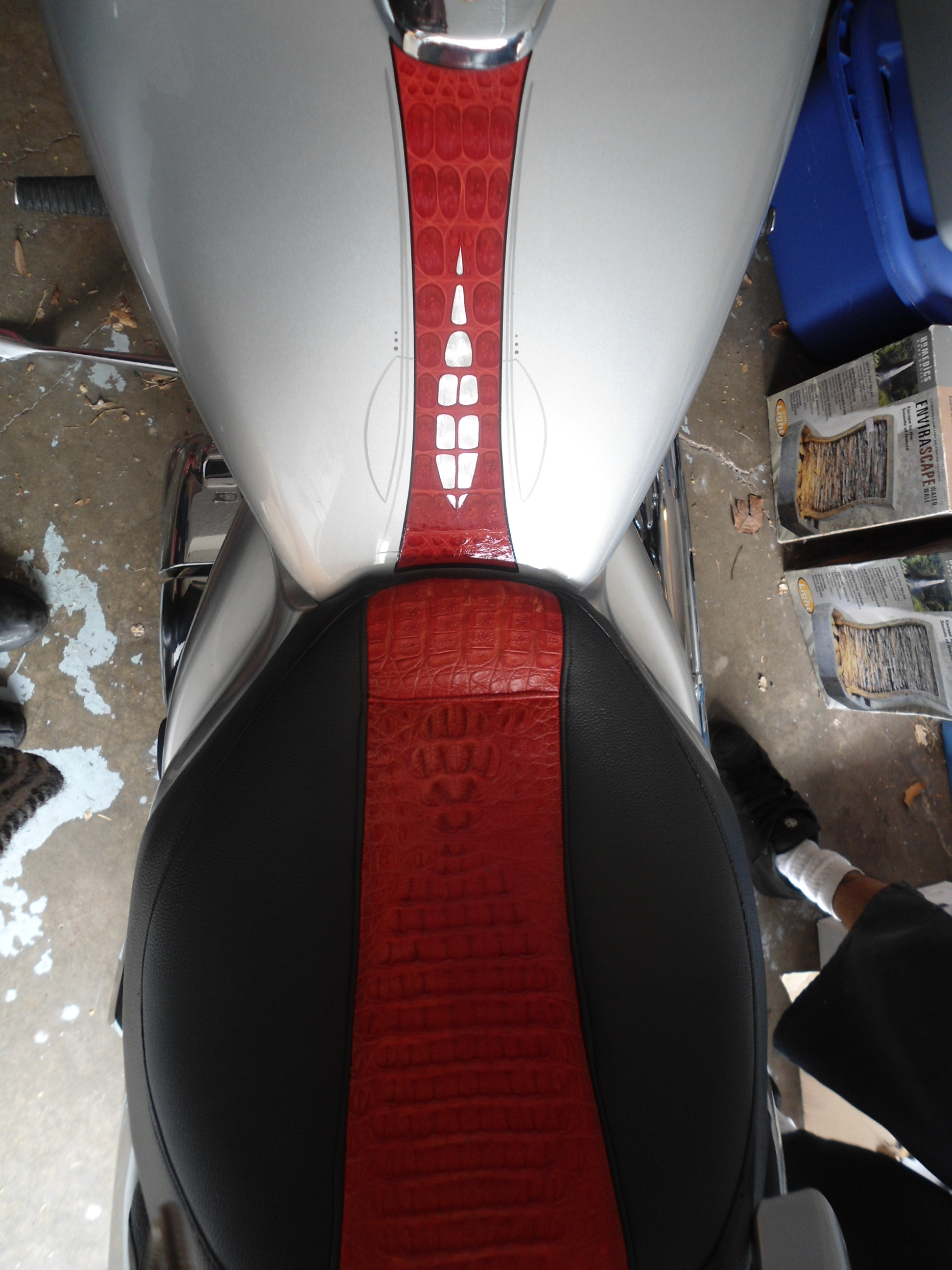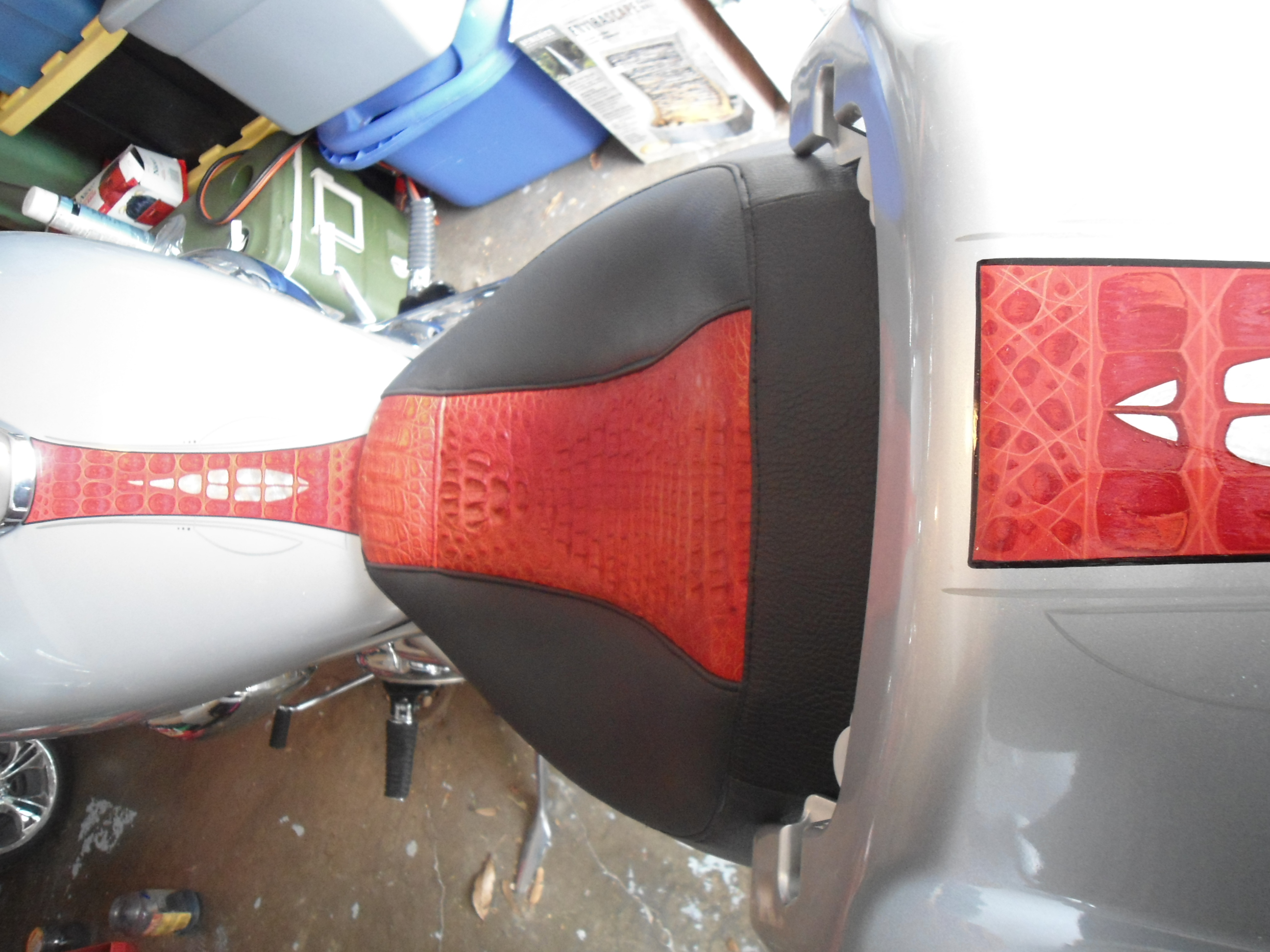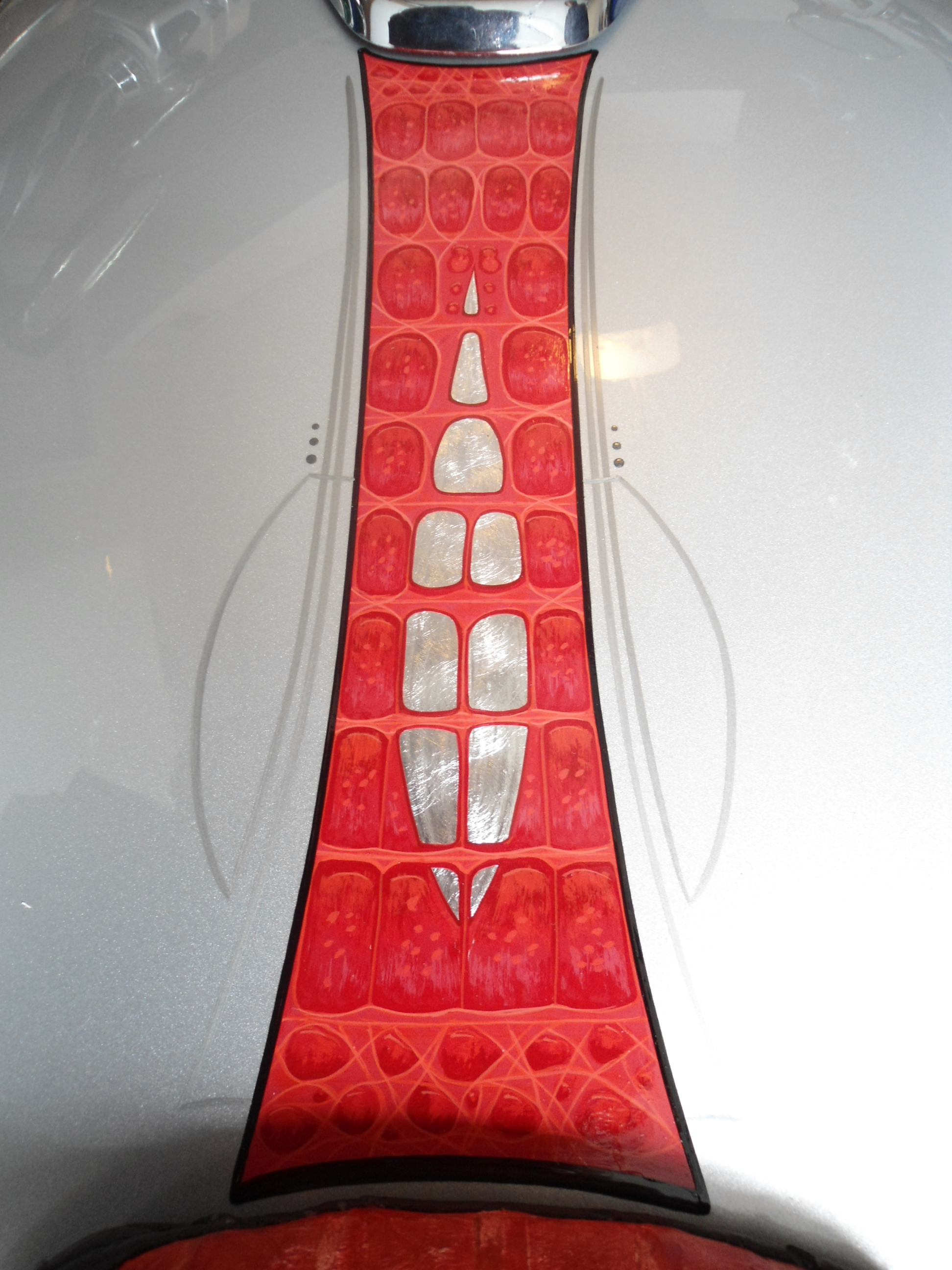 Motorcycles Gator Date: February 24, 2014Author: nrodzoriginals 0 Comments Suzuki motorcycle painted in 2012 Guy had a Cayman Gator seat already and wanted it to look like it was on the bike too. Silver leaf is on the inside and a light pinstriping on the outside Share this: Click to share on X (Opens in new window) X Click to share on Facebook (Opens in new window) Facebook Click to share on Pinterest (Opens in new window) Pinterest Like Loading... Related