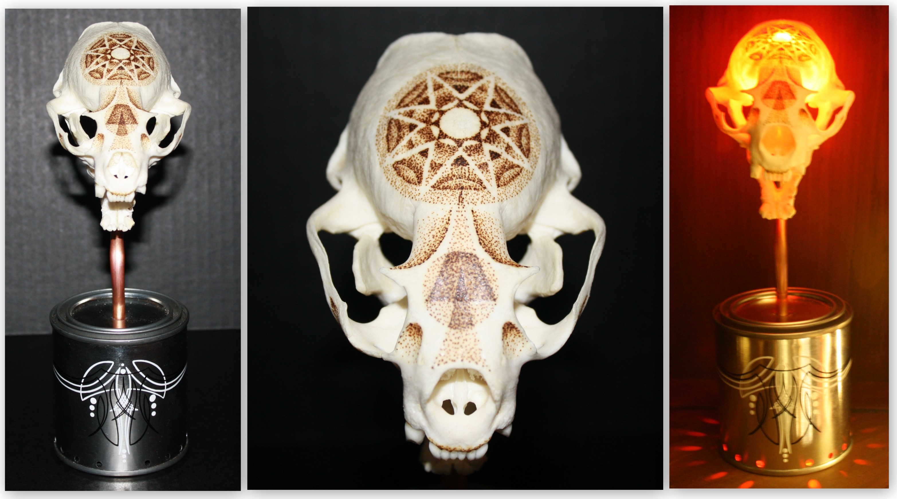 Skulls Otter Skull Lamp Date: March 21, 2014Author: nrodzoriginals 0 Comments Real Otter Skull Lamp Pyrography Dotwork on Skull with LEDs inside Pinstriped base that is a paint can with LEDs inside Share this: Click to share on X (Opens in new window) X Click to share on Facebook (Opens in new window) Facebook Click to share on Pinterest (Opens in new window) Pinterest Like Loading... Related