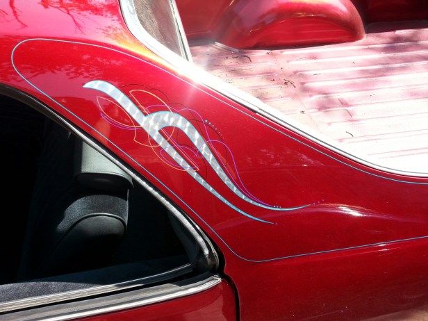 Lowriders El Camino Date: September 21, 2016Author: nrodzoriginals 0 Comments Spun silver leafing, stripes and lines Share this: Click to share on X (Opens in new window) X Click to share on Facebook (Opens in new window) Facebook Click to share on Pinterest (Opens in new window) Pinterest Like Loading... Related